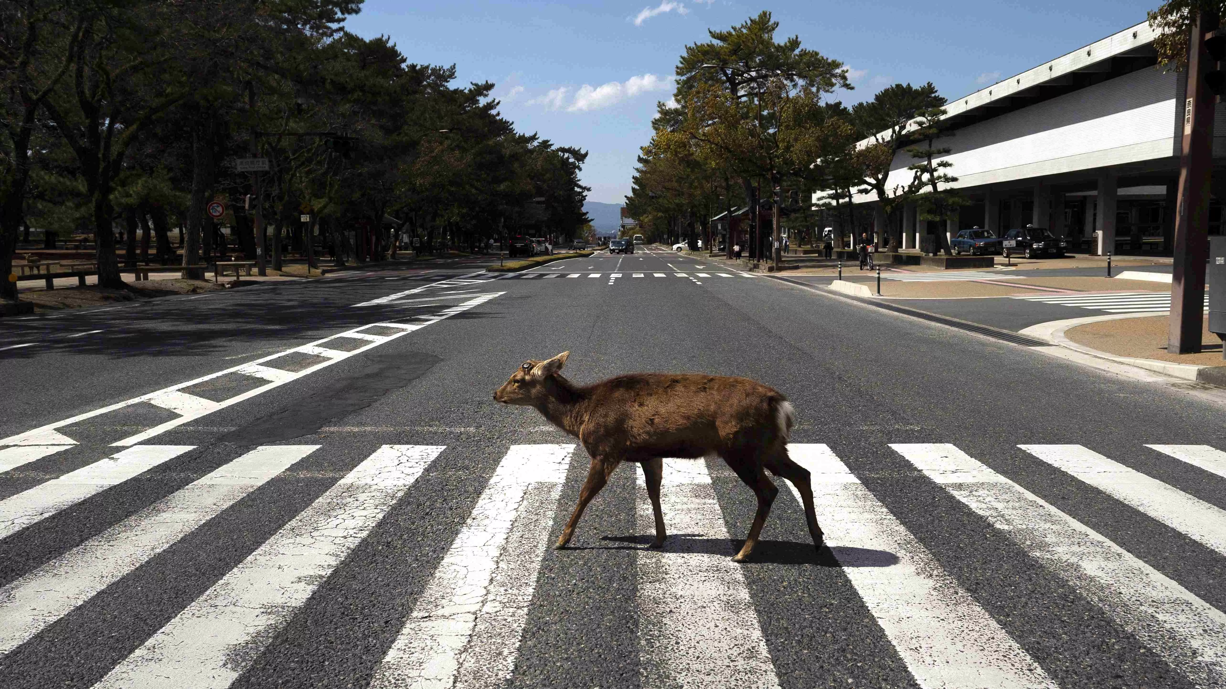 日本奈良公園梅花鹿近日出沒於大阪JR車站、梅田等地。(圖/美聯社資料照) -