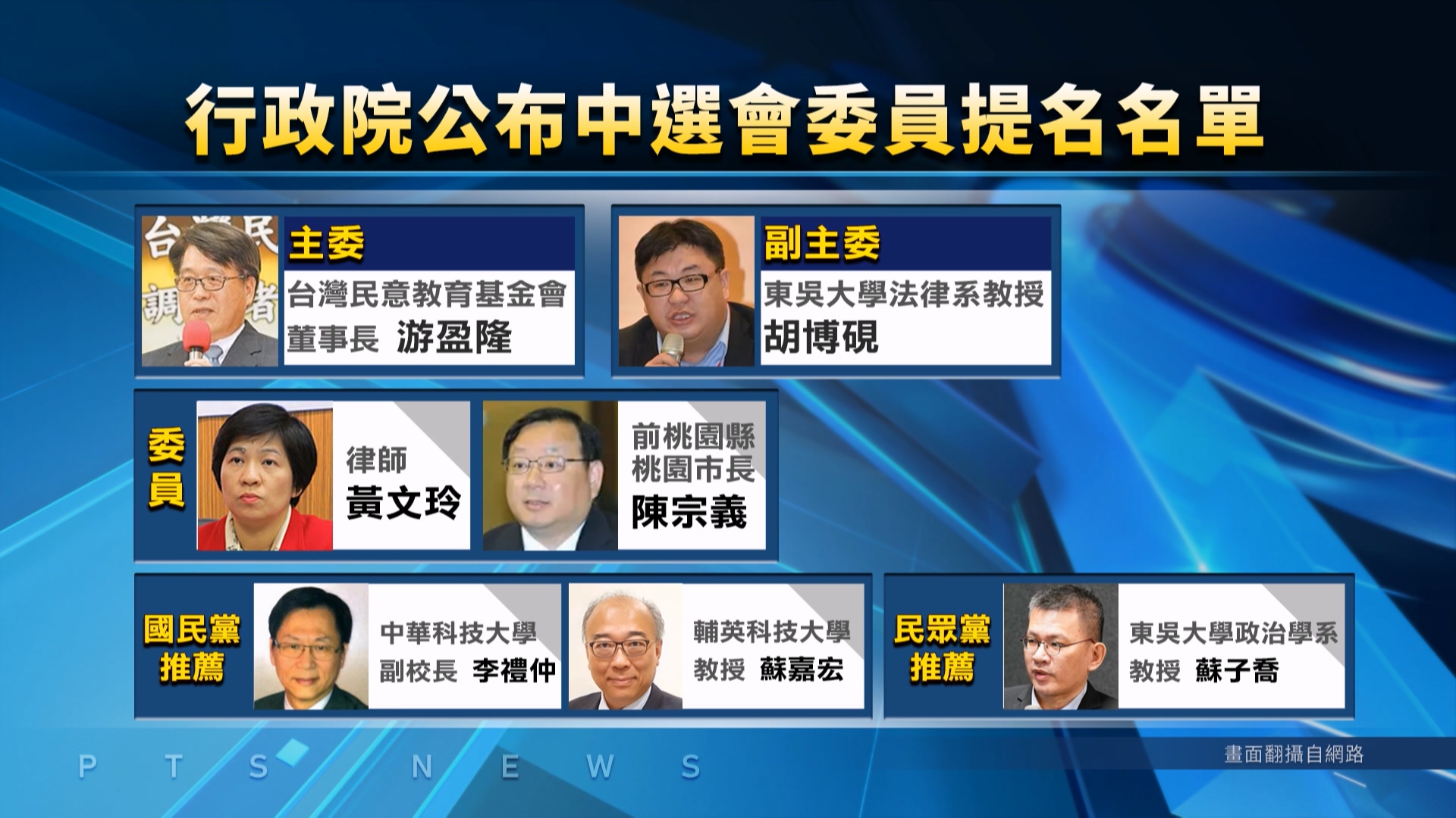 中選會7委員提名名單出爐 政院納藍白推薦人選