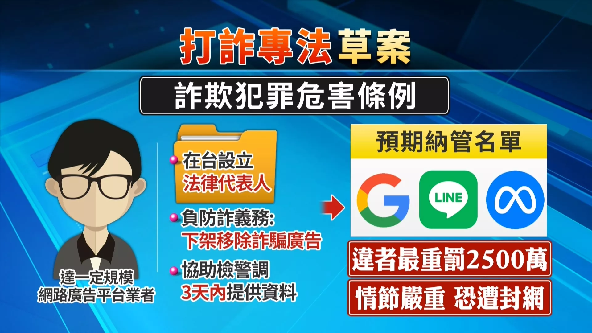 打詐專法拍板最高可罰2500萬 Google、Meta料將納管