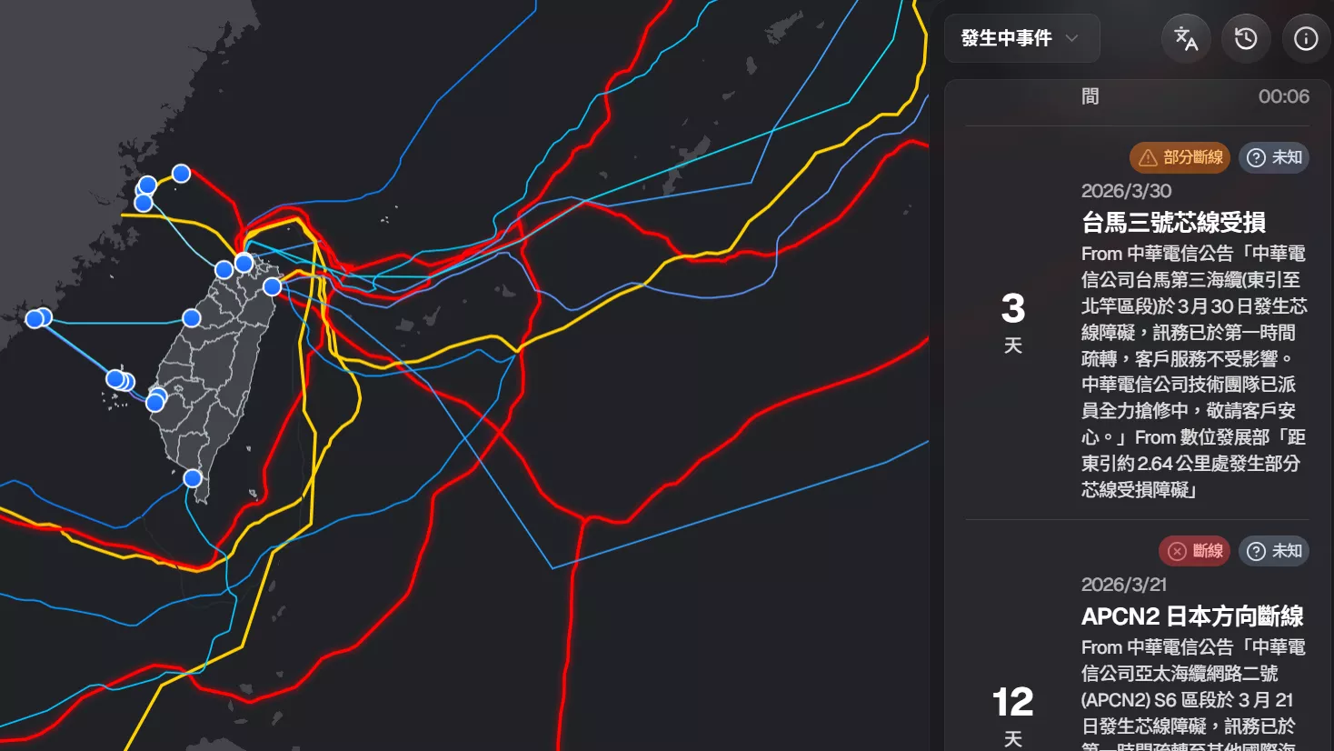 (圖/台灣海纜動態地圖) 台馬3號電纜損壞 海巡帶回疑肇事中國船