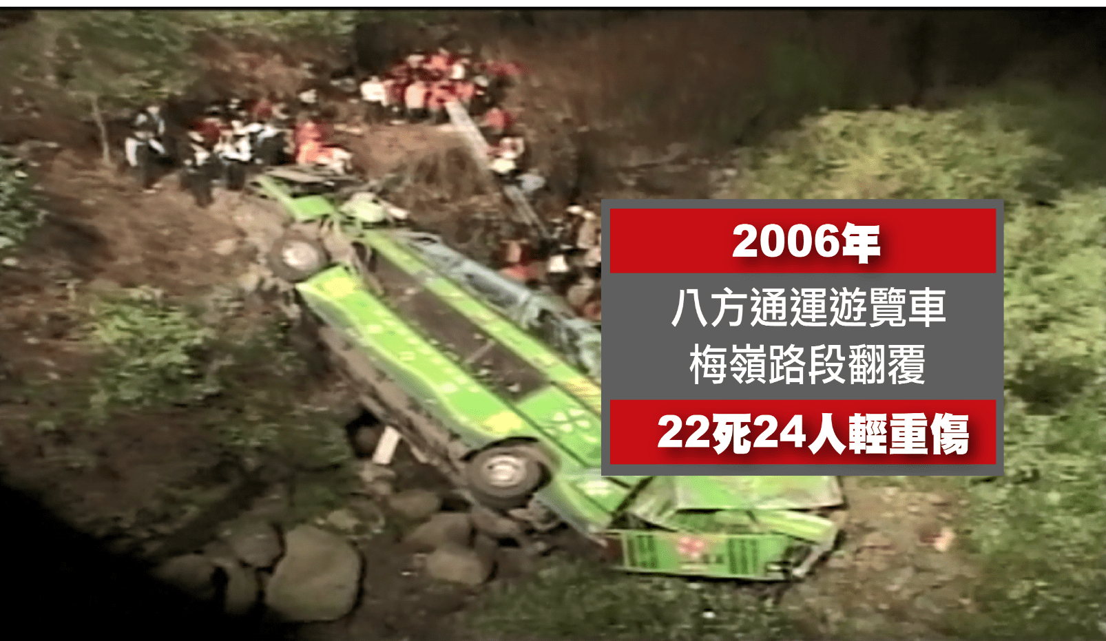公視新聞台北市──陽明山仰德大道》遊覽車翻覆墜谷 煞車失靈8死25傷