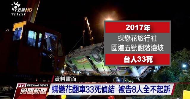 - 台北市──國道5號》蝶戀花旅社遊覽車翻車33死 司機過勞成主因