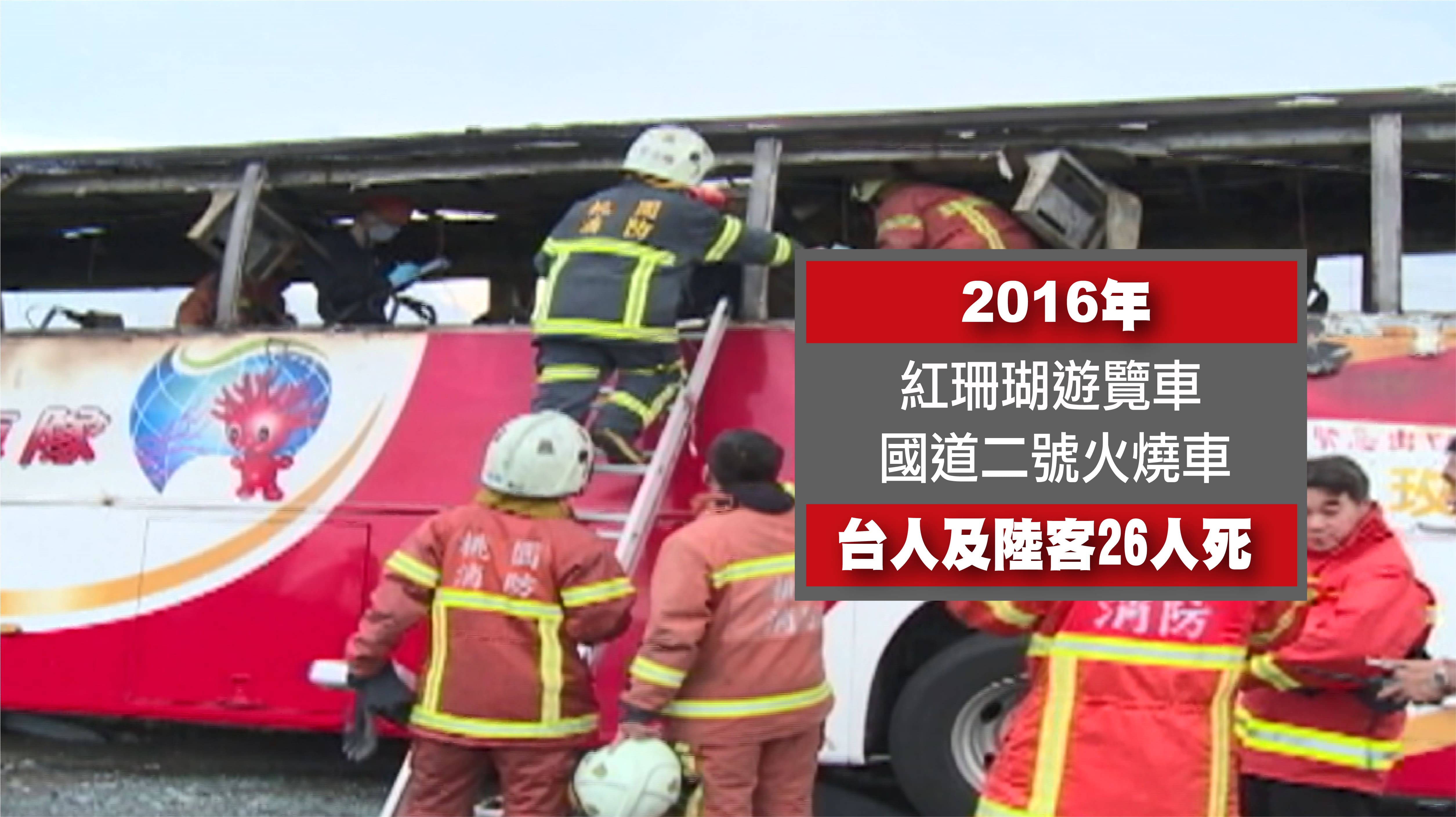 - 桃園市──國道2號》陸客團火燒遊覽車26死 司機飲酒縱火釀悲劇