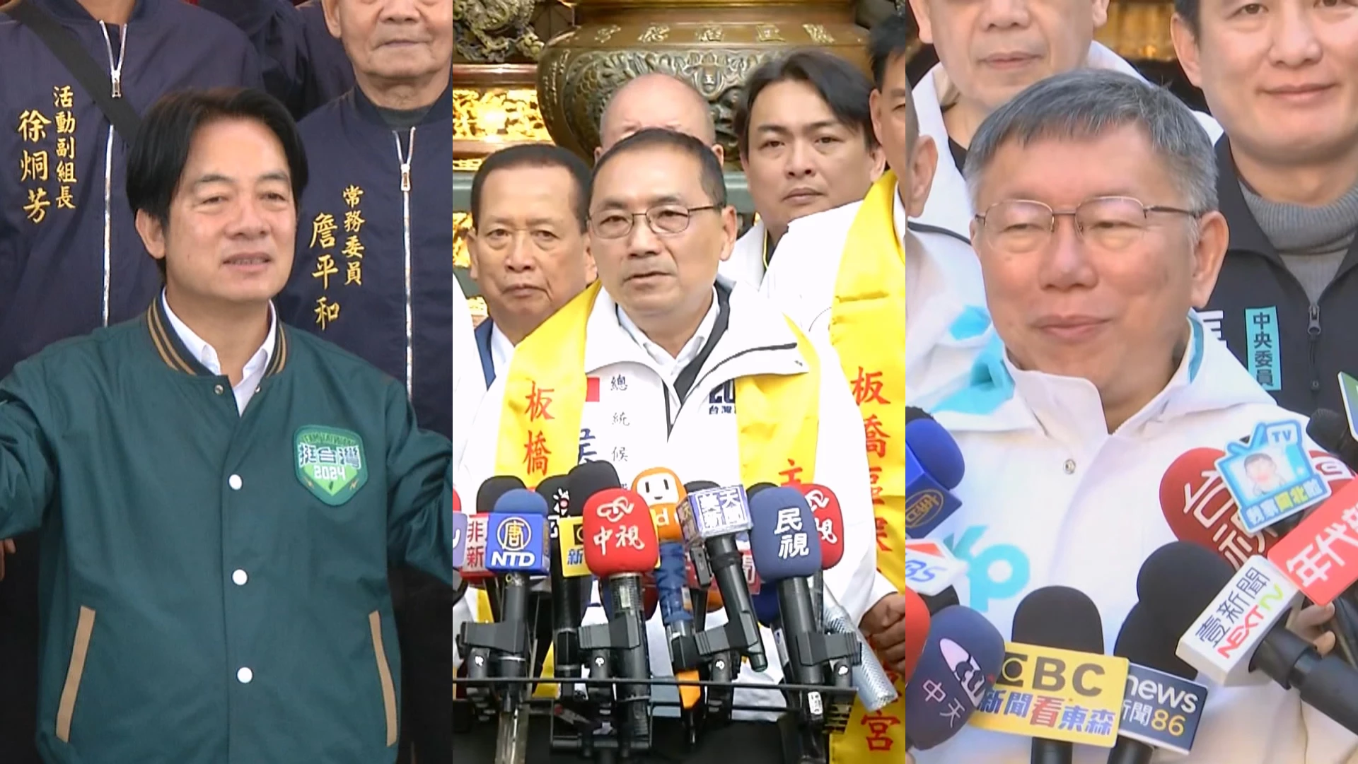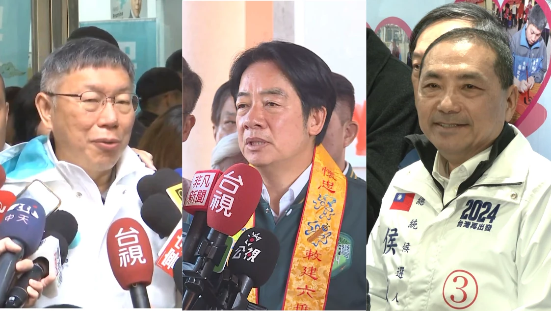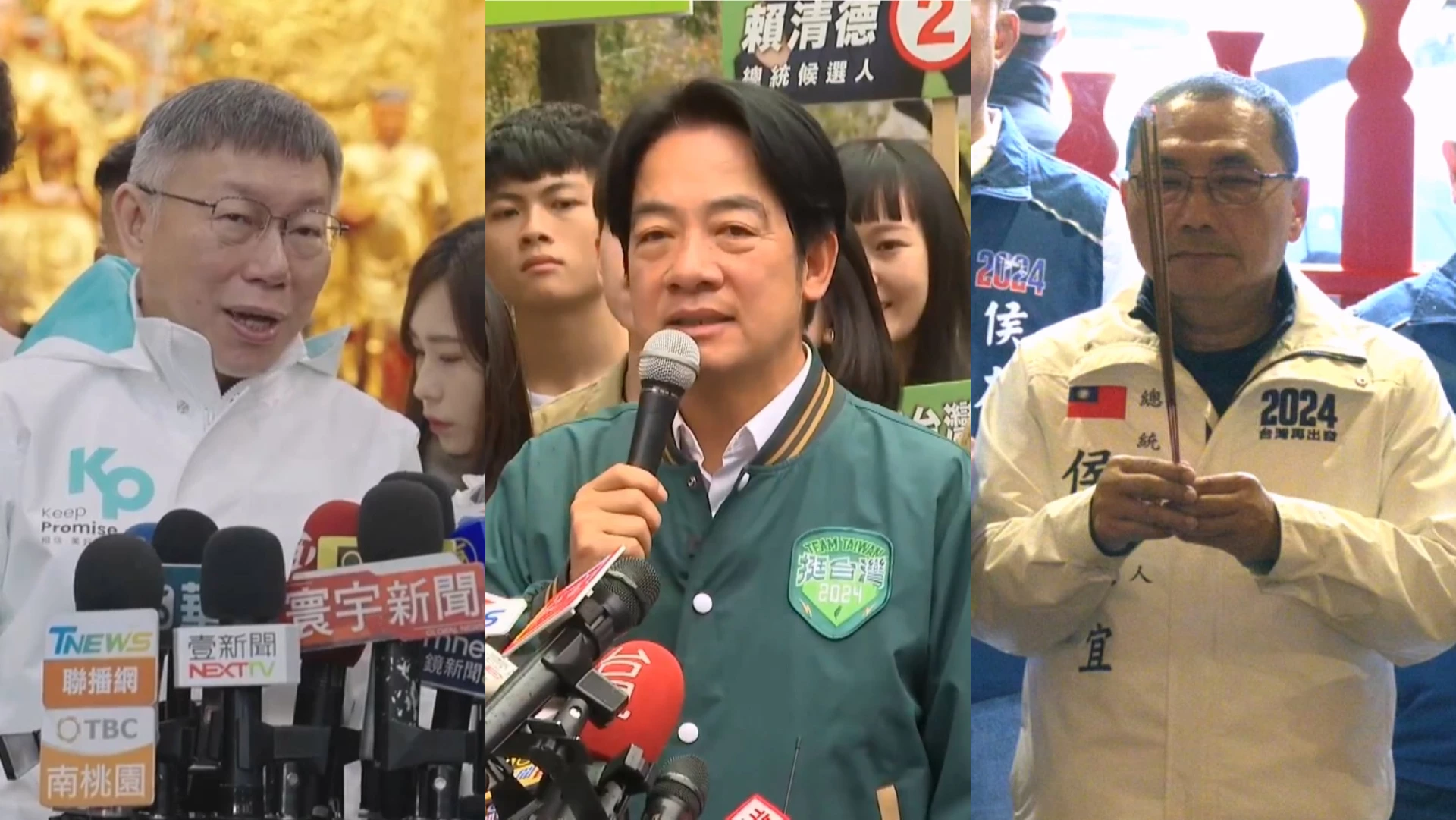 首頁 熱門議題 2024台灣大選 2024台灣大選 2024大選 台灣 國民黨 柯文哲 總統候選人 賴清德 2024年1月13日將舉行中華民國第16任正副總統選舉與第11屆立法委員選舉,目前民進黨提名現任副總統賴清德,國民黨提名新北市長侯友宜,民眾黨提名前台北市長柯文哲三方競逐。 讚 加入公視會員,按讚收藏你關注的報導 登入會員 下次再說 2024/1/8 12:31 2024大選/政黨政見發表會 小黨抗議發表時間分配不均 2024大選 保證金 小黨 政見發表會 ... 政黨 時間 中選會 台灣 台灣基進 台灣基進黨 捐款 時代力量 選舉 門檻 電視政見發表會 競選影片 2024/1/8 12:31 2024大選/選前搶攻南台票 柯賴侯台南續拚場 2024大選 國民黨 柯文哲 總統候選人 ... 賴清德 聯合內閣 侯友宜 南部 台南 台灣人 城市 政黨輪替 棄保 民進黨 聯合政府 選前 2024/1/7 19:06 2024大選/吳籲棄藍綠保台 趙籲共機勿再擾台 2024大選 副總統候選人 台灣 海峽中線 ... 共機 台北 台灣海峽 吳欣盈 國民黨 民眾黨 民進黨 立委候選人 蕭美琴 超級星期天 趙少康 車隊掃街 造勢 2024/1/7 19:03 2024大選/韓國瑜促支持者挺侯 柯稱遭藍營施壓所致 2024大選 國民黨不分區立委 支持者 總統候選人 ... 藍營 侯友宜 台大校長 國民黨 新住民 柯文哲 民眾黨 瑞豐夜市 賴清德 超級星期天 韓國瑜 高雄 2024/1/7 12:31 2024大選/賴稱太陽花擋下服貿 才能在疫情期間穩健發展經濟 2024大選 國民黨不分區立委 支持者 空氣槍 ... 總統候選人 侯友宜 台灣經濟 國民黨 太陽花 太陽花學運 服貿 柯文哲 民眾黨 民進黨 瑞豐夜市 疫情 立委候選人 經濟 賴清德 超級星期天 造勢晚會 韓國瑜 2024/1/7 07:36 2024大選/柯文哲台中造勢 1男攜空氣槍到場遭送辦 柯文哲 社會秩序維護法 空氣槍 總統候選人 ... 台中 民眾黨 男子 辣椒水 霧峰分局 2024/1/6 12:31 2024大選/賴喊國會過半侯籲政黨輪替 柯批侯操作棄保 侯友宜 大甲鎮瀾宮 新北市 柯文哲 ... 總統候選人 賴清德 黃金週 中央委員 兩岸和平 反滲透法 台日關係 台灣 國民黨 太陽花學運 棄保 民眾黨 民進黨 立委候選人 縣市 蔡英文總統 車隊掃街 造勢 選前 選前之夜 2024/1/5 19:31 涉收中國百萬泰達幣資助參選 桃園馬治薇裁定羈押禁見 泰達幣 羈押禁見 資助 連署書 ... 郭台銘連署 馬治薇 中國 候選人 參選 反滲透法 媽祖繞境 林姓男子 桃園 桃園地檢署 檢調 民眾黨 湄洲媽祖 登記參選 立委候選人 總統候選人 虛擬貨幣 裁定 黨部主委 2024/1/5 19:31 2024大選/侯拋青年補貼賴打育兒政績 柯續車掃談中美關係關鍵 2024大選 中台灣 中美關係 侯友宜 ... 賴清德 中國介選 低收入戶 台灣 政績 柯文哲 民進黨 私立大學 租金補貼 育兒津貼 補貼 言論自由 車掃 青年 凱旋苑 2024/1/5 12:31 2024大選/趙提部分護理師加薪 吳籲勿棄保、蕭桃園站台 副總統候選人 吳欣盈 支持者 蕭美琴 ... 護病比 趙少康 車隊掃街 口罩 台南 台灣 國民黨 桃園 民眾黨 民進黨 病床 立委候選人 總統候選人 護理 護理師 2024/1/5 12:31 2024大選/侯回防新北賴批藍傷言論自由 柯談中美關係平衡 侯友宜 新北市政府 柯文哲 民進黨 ... 總統候選人 賴清德 中台灣 中國 台灣 國民黨 拔樁 掃街 新北市府 民眾黨 美中台關係 美國 萬里老家 蘆洲 言論自由 里長 黨籍 2024/1/4 19:31 介選調查鎖定新住民惹議 政院澄清未針對特定族群 中國介選 新住民 族群 法務部 ... 澄清 介選 兩岸和平 報告 境外勢力 檢察官 行政院會 行政院發言人 調查 林子倫 2024/1/4 12:31 2024大選/綠批辭中廣董座仍持股 趙少康稱自己的投資 2024大選 副總統候選人 吳欣盈 新住民 ... 趙少康 24小時 中廣董事長 介選 反滲透法 境外勢力 民眾黨 民進黨 法務部 立委候選人 苗栗 蕭美琴 行政院會 車隊掃街 2024/1/4 12:31 2024大選/藍營重申聯合政府 柯文哲批操作棄保 侯友宜 台灣民主 柯文哲 棄保 ... 總統候選人 聯合政府 賴清德 2024大選 台灣大選 合約 國民黨 新北國中生 校園暴力 死刑存廢 民眾黨 民進黨 議題 趙少康 車隊掃街 高端 高端疫苗 2024/1/3 12:31 2024大選/中國介選爭議延燒 賴清德喊話侯友宜回歸國政討論 2024大選 中國介選 侯友宜 台灣民主 ... 總統候選人 賴清德 候選人 國中生割頸案 國民黨 抹紅 政黨輪替 新北國中生 柯文哲 校園安全 民進黨 爭議 總統大選 總統蔡英文 討論 4 4