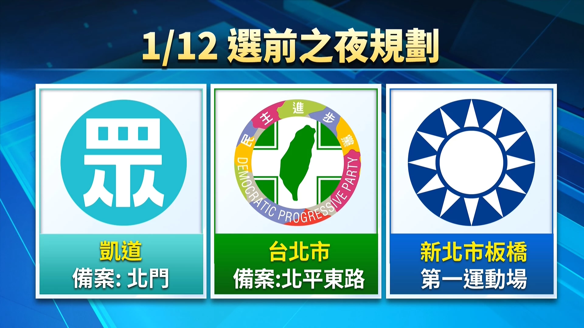 首頁 熱門議題 2024台灣大選 2024台灣大選 柯文哲 總統候選人 2024大選 侯友宜 副總統 國民黨 2024年1月13日將舉行中華民國第16任正副總統選舉與第11屆立法委員選舉,目前民進黨提名現任副總統賴清德,國民黨提名新北市長侯友宜,民眾黨提名前台北市長柯文哲三方競逐。 讚 加入公視會員,按讚收藏你關注的報導 登入會員 下次再說 2023/12/14 19:31 2024大選/柯表態支持金廈大橋公投 侯喊青年購屋免頭期款 支持 柯文哲 總統候選人 金廈大橋 ... 頭期款 青年購屋 2024大選 500萬 九二共識 侯友宜 兩岸關係 公投 副總統 國民黨 民眾黨 民進黨 當選 蔡英文 蕭美琴 表態 2023/12/14 12:31 台中破獲總統大選賭盤 賭客使用「泰達幣」下注 泰達幣 總統大選 總統選舉 虛擬貨幣 ... 選舉賭盤 偵查隊長 台中 台中地檢署 台中市 嫌犯 專案小組 張姓 警方 賭客 2023/12/13 19:31 2024大選/選前之夜 民眾黨搶得凱道路權盼創新 2024大選 凱道 台北市黨部主委 民眾黨 ... 選前之夜 黃呂錦茹 1月 中央黨部 國民黨 時間 民進黨 發言人 競選團隊 舞台 路權 陳智菡 2023/12/13 19:31 2024大選/「侯援會」里長赴中受招待 吳欣盈返國處理財產申報疑慮 2024大選 何吉盛 副總統 吳欣盈 ... 總統候選人 財產申報 侯友宜 反滲透法 合作 國民黨 民眾黨 民進黨 氣候變遷 無保請回 總統蔡英文 蔡英文總統 賴清德 車隊掃街 返國 里長 2023/12/13 12:31 2024大選/「侯援會」里長疑赴中受招待 侯友宜:勿操控不當連結 2024大選 何吉盛 侯友宜 副總統 ... 吳欣盈 總統候選人 反滲透法 合作 國民黨 民眾黨 民進黨 氣候變遷 無保請回 立委候選人 總統蔡英文 蔡英文總統 財產申報 賴清德 車隊掃街 里長 2023/12/12 12:31 醫團評3黨候選人醫療政策 籲另提政策吸引護理師留任 候選人 政策 總統候選人 護理人員 ... 護理師 2024總統大選 企業工會 台大醫院 工會 留任 賴清德 醫師 醫療 醫護人員 醫院 2023/12/12 12:31 2024大選/柯文哲提5大交通改革 侯友宜拋6至12歲課後輔導政策 12歲 交通 侯友宜 政策 ... 照顧 總統候選人 2024大選 台灣 問題 外交政策 數據 柯文哲 社群平台 葛來儀 賴清德 2023/12/12 12:31 環團檢視3總統參選人氣候政見 批欠缺細部配比、避談產業轉型 再生能源 政見 氣候 總統參選人 ... 轉型 COP28 台灣 太陽光電 氣候峰會 減碳 環團 產業 2023/12/12 12:31 2024大選返鄉投票 台鐵1/12-15加開往返台東班車 2024大選 加開 台東大學 學生 ... 期末考 返鄉投票 1月 列車 台鐵 大選 學校 實體上課 投票 自主學習 2023/12/11 19:31 2024大選/柯再批賴違建屬誠信問題 蕭美琴搶竹科選票 九三軍人節 台積電 問題 國家安全 ... 總統候選人 蕭美琴 誠信 2024大選 3D戰略 中選會 侯友宜 副總統 加薪 吳欣盈 國民黨 國防 外交政策 柯文哲 民眾黨 民進黨 號次抽籤 護國神山 賴清德 違建 選票 2023/12/11 12:31 2024選戰白熱化 內政部:介選最嚴重是假訊息 介選 假訊息 民進黨立委 賴清德訪美 ... 選戰 24小時 中選會 內政部 內政部長 副總統 反滲透法 國民黨立委 影響 林右昌 社群平台 立法委員 總統選舉 2023/12/11 12:31 2024大選/總統候選人號次出爐 柯盈1號、賴蕭2號、侯康3號 2024大選 中選會 發言人 總統候選人 ... 電視政見發表會 李利貞 侯友宜 副總統 副總統參選人 台灣 吳欣盈 問題 政見發表會 柯文哲 民進黨 總統選舉 蕭美琴 號次抽籤 賴清德 趙少康 2023/12/11 11:00 2024大選/正副總統候選人號次抽籤 1號柯吳、2號賴蕭、3號侯康 2024大選 副總統 總統候選人 總統辯論會 ... 蕭美琴 號次抽籤 2024總統 中選會 侯友宜 兩岸關係 公共電視 副總統政見發表會 副總統辯論 台灣 投票時間 抽籤 政見發表會 柯文哲 民眾黨 民進黨 立法委員 總統蔡英文 總統選舉 賴清德 趙少康 辯論會 2023/12/11 07:31 2024大選/柯彰化造勢轟藍綠 賴籲勿步入香港後塵 侯友宜 副總統參選人 總統參選人 花蓮造勢 ... 賴清德 2024大選 不分區立委 交通 台灣 國民黨 國際人權日 安全 政策 柯文哲 民主 民眾黨 民進黨 經濟 美麗島事件 自由 蔡英文總統 蘇花公路 號次抽籤 觀光 趙少康 香港 2023/12/10 12:31 2024大選/侯友宜談課綱槓中央 籲賴清德莫製造世代對立 國是會議 國際人權日 總統參選人 美麗島事件 ... 賴清德 108課綱 12月 不分區立委 侯友宜 國民黨 教育 柯文哲 民主 民眾黨 民進黨 當選 紀念 課綱 選總統 高層 8 8