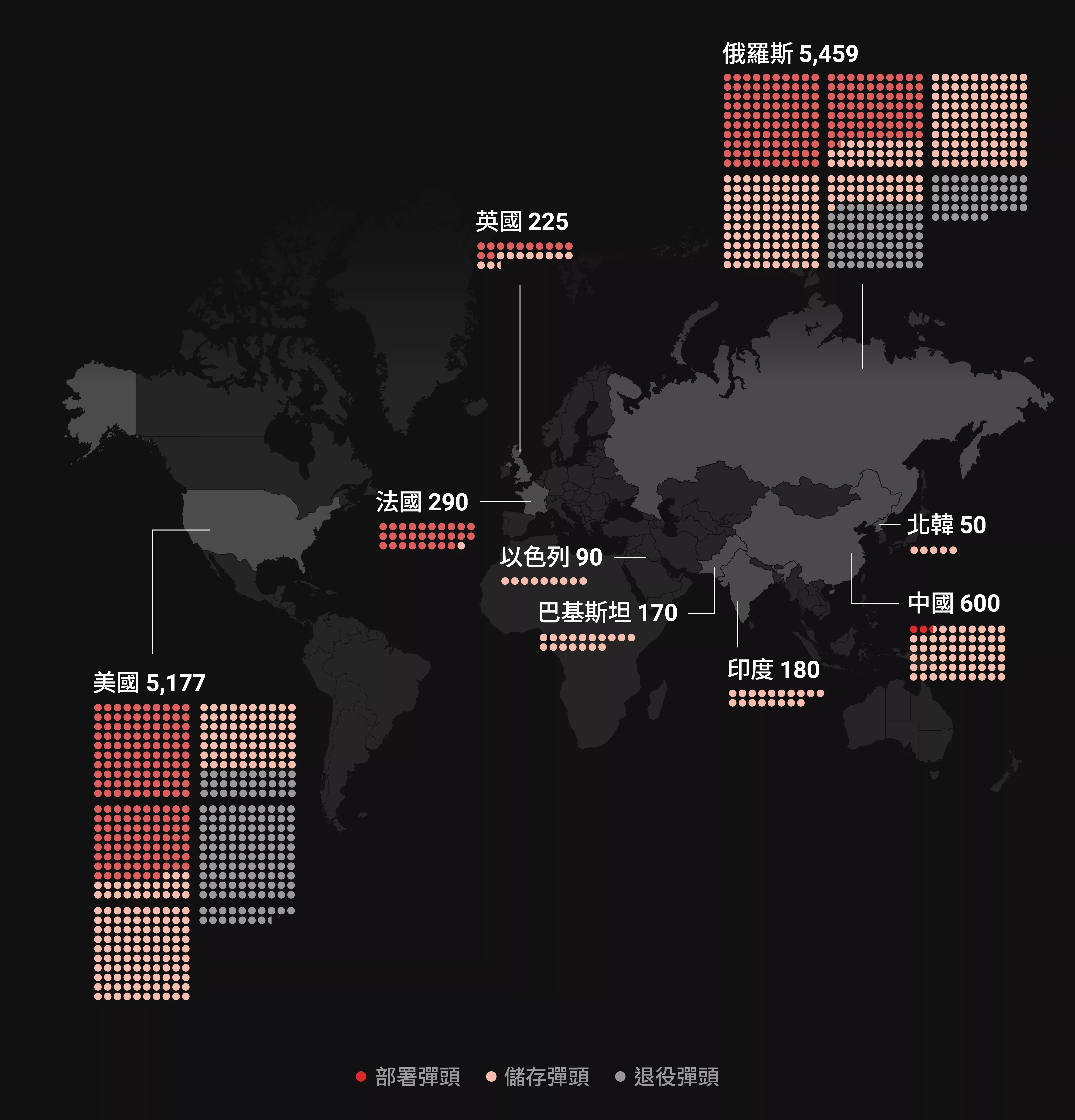 瑞典智庫斯德哥爾摩國際和平研究所(SIPRI)發布《2025全球核力量年鑑》指出,截至2025年1月,全球約有1萬2241枚核彈頭,其中9614枚屬可供實際部署的軍事庫存,且約有2100枚已搭載在彈道飛彈上,代表處於高度戰備狀態。
