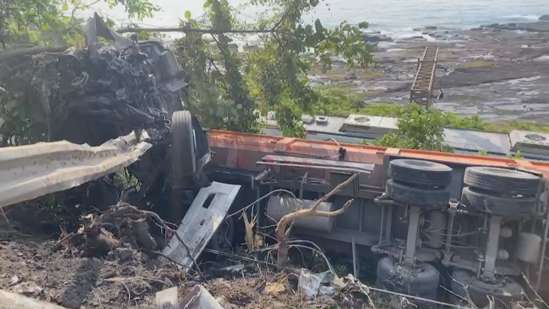 Truck Nearly Falls on Train Track 宜蘭頭城聯結車翻落邊坡 險些波及鐵軌