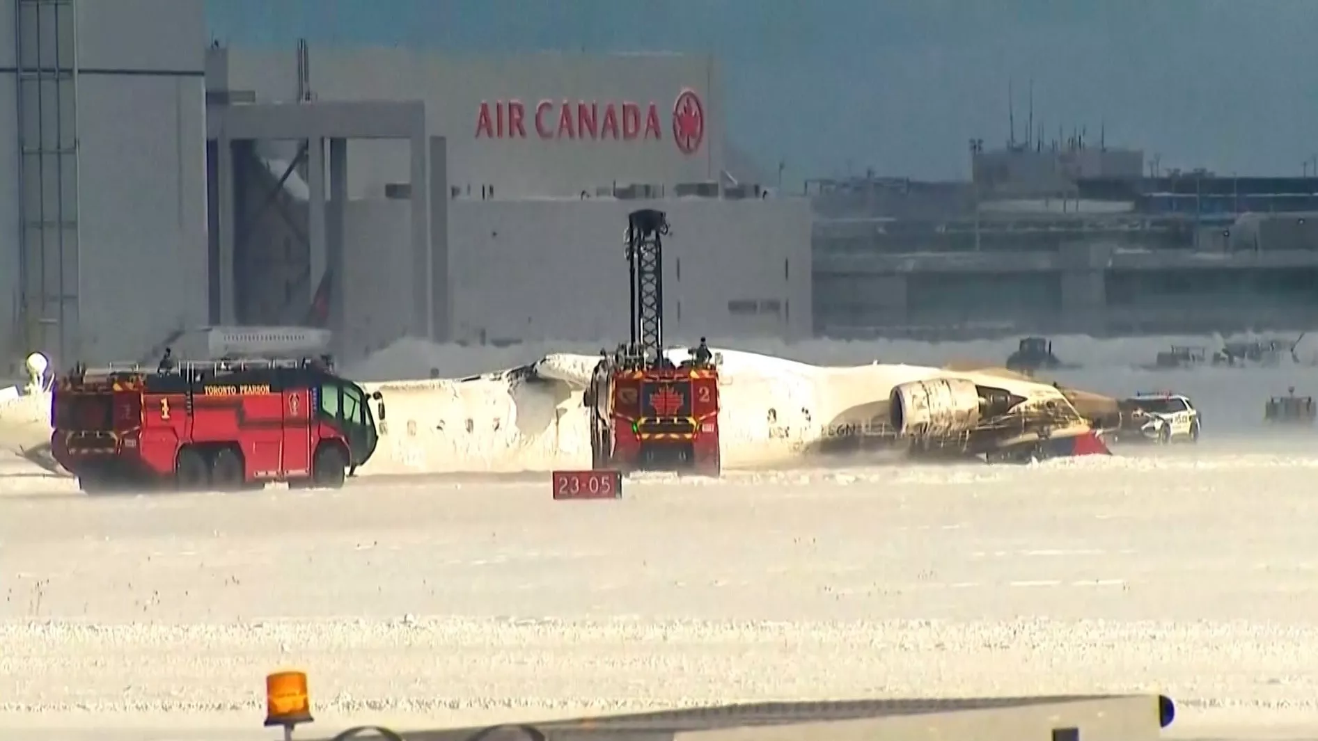 เครื่องบินของเดลต้าแอร์ไลน์ พลิกคว่ำบนรันเวย์ เพราะสภาพอากาศ