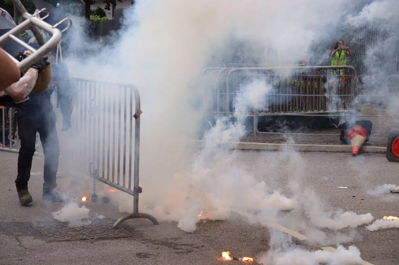 港警武力驅散示威民眾 記者中催淚彈