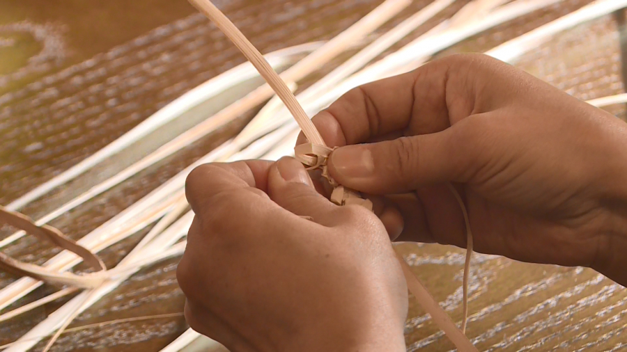 屏東市勝利眷村保留70棟日治時期眷舍,屏東縣文化處新修復20棟眷舍,陸續開放給作家、生態旅遊、原住民工藝等文創人士進駐。 把曬乾的月桃葉葉鞘,泡水軟化後、再撕成細條,透過編織手法,一步步做成手環、項鍊。和遊客互動教學的杜岱蓁,是德文部落返鄉青年,傳承古老部落月桃編,走出部落教學,用最簡單輕鬆的方式,讓一般民眾認識原住民工藝。 遊客 曾小姐表示,「以前都要去山上,然後坐車都要坐很久,現在就是一下下