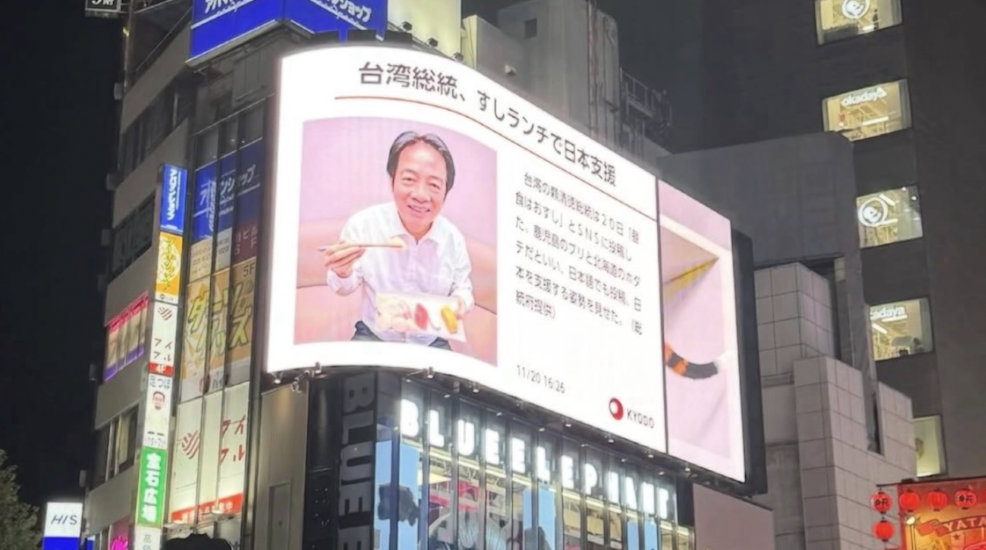 | 全球中日外交風波持續延燒,美國國務院20日首度主動發聲、力挺日本,指出對美日同盟的承諾堅定不移,並反對以武力改變台海現狀。總統賴清德昨(20)日則是在社群媒體PO出吃壽司、支持日本的片段,不只外媒,日本媒體也都紛紛報導,更登上東京街頭看板與電車螢幕。