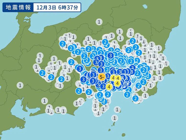 | 全球日本關東地區,7日晚間10點多,發生規模5.9強震,最大震度達到5級。強烈的地震,造成東京有地鐵站停電,還有下水道管路受損,導致水不斷冒出。根據NHK統計,這場地震至少造成24人受傷;所幸交通大致沒有受到影響,地鐵和新幹線幾乎全部恢復運行。