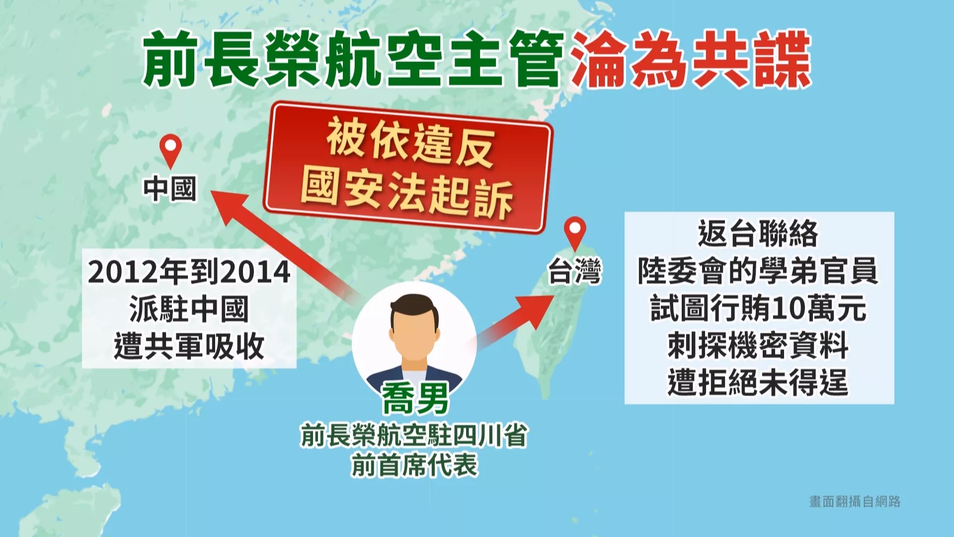 前長榮航空駐四川代表涉共諜案 向陸委會探機密遭起訴