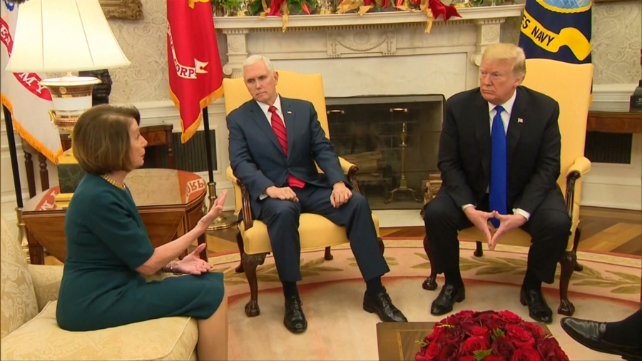 川普邀國會領袖協商美墨圍牆預算 爭吵收場美國總統川普為了爭取國會支持增列50億美元經費興建墨西哥邊界圍牆,以阻擋非法移民,1請民主黨領袖到白宮協商。幾乎難以達成共識,川普讓媒體全程拍攝討論, 美國總統川普表示,「邊界安全極為重要必須謹慎行事。你們看看那些在邊界的車隊,看看那些非法移民,還有一大堆....我們別無選擇,只有讓政府停擺(來凸顯問題)。」 川普和裴洛西、舒默兩位民主黨國會領袖的會談,一開始還心平氣和,但隨著爭論集中在邊界圍牆預