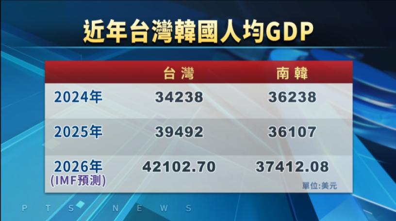 臺灣舊年人均GDP達4萬美金 閬22年超越南韓