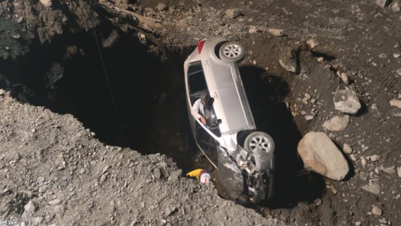 |地方台東的文里溪產業道路昨(25)日晚上有一輛自小客車疑似因為路況不熟,晚上沒有路燈加上施工警告設施不足,誤闖施工缺口、掉進溪床,幸好路人發現報警,救出車上一對60多歲夫妻。