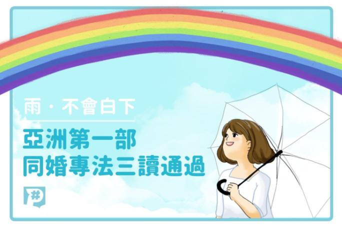 |今天,我們共同見證了台灣人權的一大步。《司法院釋字第七四八號解釋施行法》當中,明訂從今年5月24日開始同志伴侶可以辦理結婚登記,且財產制、監護、扶養義務、繼承權利等皆準用民法相關規定。 立院審同婚專法草案 挺同反同場外聚集 同婚專法立院表決 朝野黨團甲級動員 歡喜之餘,還是要認知到法律不是完美的,有關同志家庭中的子女、跨國婚姻以及信仰自由方面,依然有些模糊或爭議地帶,還有待討論—— 異性