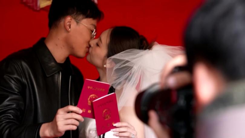 |全球東亞各國的生育率都在節節下降,中國甚至連結婚的人都大幅減少,去(2024)年的數字比前一年(2023)少了158萬對,下滑超過兩成。中國官方為了「催婚」,想方設法讓結婚變得更簡單,包括結婚登記全國通辦,不必再大老遠回到戶籍地;也不需要提供戶口名簿,這代表不必經過家長同意,小倆口決定就好。而各地民政單位也是各出奇招,像是上海推出夜間登記服務,領完證可以直接在夜店辦婚禮;北京等其他城市則是跟觀光景點合作,推出特殊的結婚行程。更常見的是發放結婚消費券,但是金額通常不高,大約人民幣800到1000元,民眾反映「吸引力不大」。還有在一些農村,連已經牽手一輩子的老夫妻也沒放過,村裡每天廣播「領結婚證送雞蛋」,動員老人家來補登記。而做了這麼多努力有沒有用呢?中國今年上半年的結婚對數已經略有回升。不過有專家認為,這只是一個短期數字,如果年輕人的結婚意願沒有提升,結婚再方便,也很難讓他們說出「我願意」。