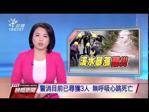 |滾滾黃泥水不斷從山上、傾洩而下,搜救人員乘坐橡皮艇來來回回,尋找是否還有受困的民眾,這起意外發生在周日下午12點50分,新北市消防局接獲報案指出,有6人在坪林的刣牛寮溪,因為溪水暴漲被沖走,警消人員緊急出動救援後,到了下午三點半,尋獲一名失蹤者,四點半又尋獲兩位失蹤者,不過3人到院前都已無呼吸心跳生命垂危,另外還尋獲2名散客,所幸生命跡象穩定,至於其他3名失蹤者,還在持續搜救中。 ==新北市