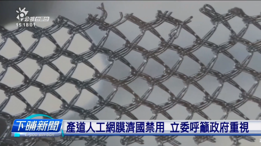 |頂日有一款囥入去女性的胸前,咧美容乳仔予較顯目的產品,已經證明講有引起淋巴癌的風險,臺灣也已經宣布全面禁止使用。早起閣有立法委員佮婦女團體開記者會,指出一款經過手術,囥入去女性的產道內面的人工網仔,講會減輕尿失禁、治療子宮墜落來,毋過風險嘛真懸,已經予真濟國家禁止使用,提醒政府著愛警覺。 照片中這個「陰道人工網膜」,是專門用來治療女性尿失禁、及子宮脫垂的植入物,放在陰道壁可加強支撐力量。不過國際