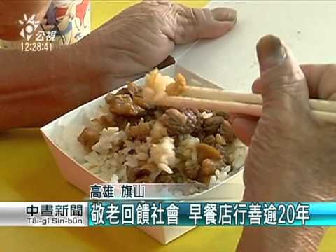|高雄市旗山區有一間早餐店,對70歲以上的長者長期提供半價的優惠,還有公婆跟媳婦同行也有一樣優惠,每逢過年、重陽節日更提供免費吃到飽,讓附近的老人家受惠不少,一做就是20年,老闆說,他最大的希望就是,全台能有更多的店家和他一起回饋社會。 旗山的這家早餐店,不只生意好,更有人情味,看看牆上的招牌,寫著敬老尊老回饋社會,對70歲以上的長者和殘障者半價優待,讓附近的老人家直接受惠,只要家裡沒開伙,就