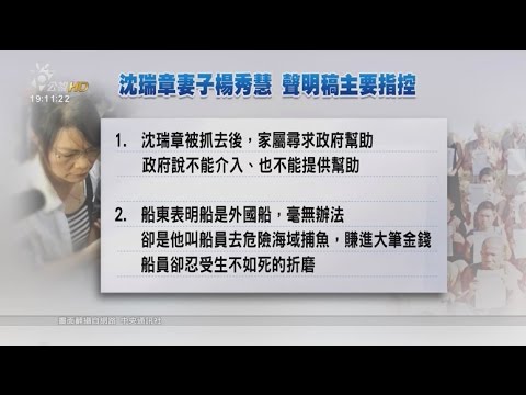 |兩岸遭到索馬利亞海盜挾持的輪機長沈瑞章返台,他的妻子今天發布聲明稿,重批政府無能、船東冷血無情,外界也質疑外交部沒有作為,但外交部長李大維今天強調,一直有透過中間人,聯繫救援工作。 我國籍輪機長沈瑞章,在遭到索國海盜劫持4年半後,昨天終於返台。他的妻子今天發布聲明稿,控訴這些年來政府無能為力,也批評船東冷血無情,聲明中指出,沈瑞章被抓去後,家屬尋求政府幫助,政府說不能介入、也不能提供幫助;船東也