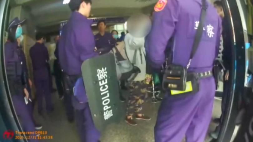 |地方台中一名楊姓婦人今(31)日將近中午要進入台中地方法院,不過通過安檢X光機時,法警發現她的背包內有一把菜刀,當場將她攔下,並要求交出菜刀保管,楊姓婦人不願配合,還與法警發生爭吵,轄區警方獲報持盾牌趕到法院,將婦人帶回派出所。