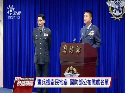 |憲兵搜索民宅案引發濫權爭議,今天下午國防部公布行政調查結果,懲處包括政戰局、及憲兵隊一共14名軍官,其中政戰局長聞振國記過兩次、憲兵指揮部指揮官許昌記申誡一次,兩個人都出面鞠躬道歉。 官拜中將的政戰局長聞振國鞠躬道歉,接著憲兵指揮部指揮官許昌中將,也為造成社會不安而道歉。 延燒數日的憲兵搜索民宅案,國防部長高廣圻承諾兩日完成調查報告後,11號下午公布懲處。 除了政戰局長記過兩次,
