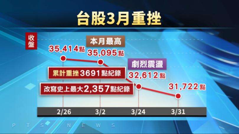 |台語新聞中東戰爭予全球原油價衝懸,今仔日(3/31)台股收佇31722點、落795點,也是收盤落第12濟。 講著3月的大盤,總共落3691點,並舊年3月落2357點的紀錄較低,比關稅戰閣較慘。(新聞標題、導言為台語文)