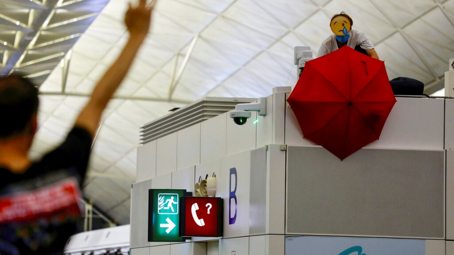 |香港機場接連兩天,在示威中癱瘓,昨天晚間示威者和港