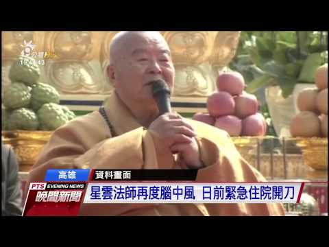 |佛光山星雲大師、再度發生出血性腦中風!3天前緊急送到高雄長庚治療,醫療團隊表示,這次出血部位、位在左腦室,血塊大約有1個拳頭大,雖然星雲大師高齡90歲,不過醫療團隊還是採取開刀清除手術,目前術後、人在加護病房觀察。 佛光山星雲大師再傳腦中風,上個月29號海外弘法結束,回到佛光山,出現噁心、嘔吐和嗜睡症狀,三天前住進高雄長庚醫院,醫療團隊檢查,發現是左腦室出血性中風,血塊約有一個拳頭大。