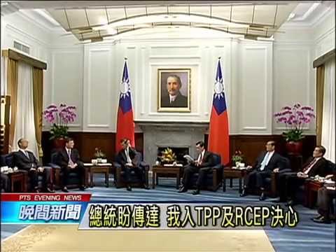 |兩岸今年APEC領袖會議和企業領袖高峰會下周在新加坡登場,馬總統下午接見領袖代表連戰與企業代表團,擔任團長的國泰金控董事長蔡宏圖說,將會藉著與各會員國企業代表和政治領袖見面的機會,展現台灣企業的優勢,增加我國在區域經濟體的影響力。 APEC領袖會議11月14號在新加坡舉行,馬總統傍晚接見領袖代表連戰以及企業領袖代表團一行人,強調我國與其他國家簽定自由貿易協定的重要性。 至於企業領袖峰會,照往例在領