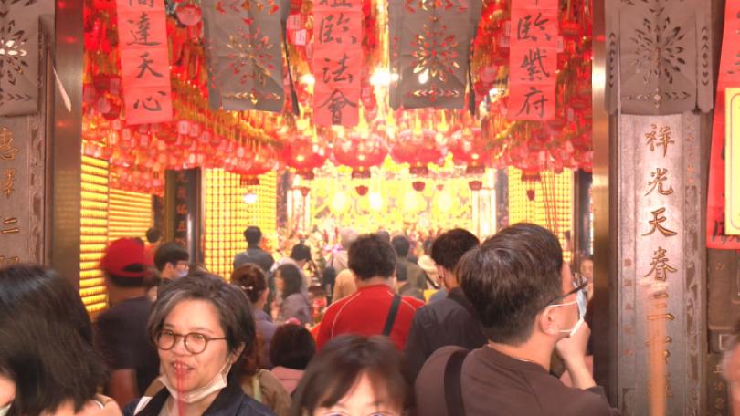 |生活大年初五迎財神,台北市知名的財神廟松山霞海城隍廟,一早參拜民眾排隊人龍,長達1、2公里長,廟方特別準備2萬份發財金,信眾領取踴躍,廟裡全都是人潮。
