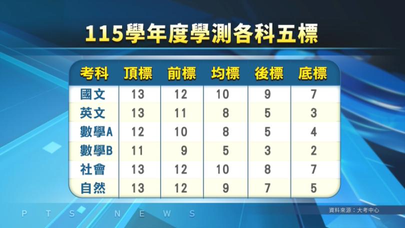 115學測成績開放查詢 各科五標、級分對照表一次看