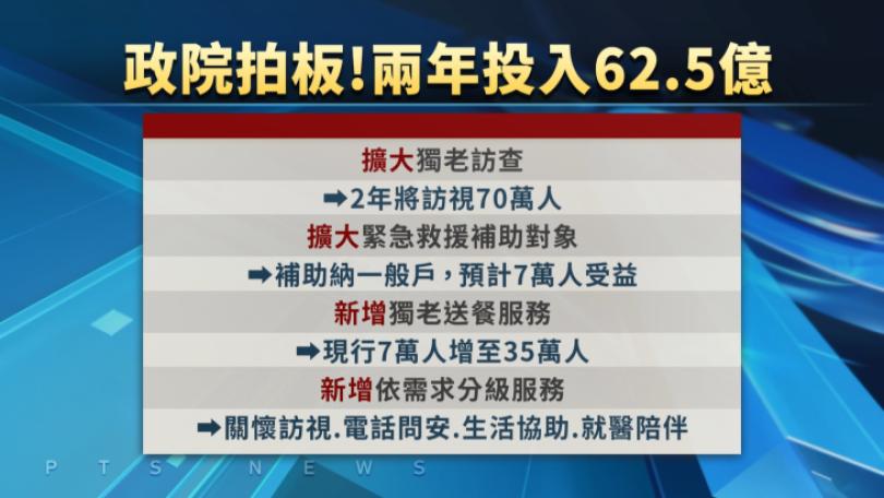 擴大推動獨居老人服務 政院拍板兩年投入62.5億因應