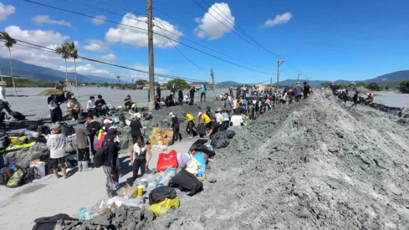 |Sejumlah ksatria sekop berbondong-bondong menuju Stasiun Hualien selama liburan Hari Nasional Taiwan. Kantor Koordinasi Tanggap Bencana menyatakan bahwa misi pemulihan pasca bencana kini telah berakhi
