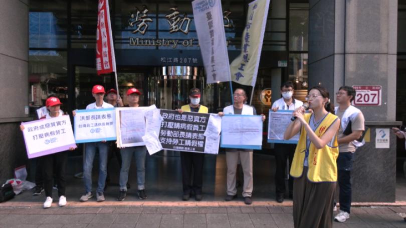 |社福人權長榮航空空服員抱病上班離世,今(17)日台鐵員工前往勞動部控訴,抗議工會理事王傑因病請病假,卻遭到站長報復性打壓,甚至記曠職加記過處分。對此,勞動部強調,雇主應該考量員工實際需求給予病假,不鼓勵抱病上班。而下午台鐵澄清,因王傑沒有提供診斷證明,未完成請假程序,因此以曠職處分,其餘20多天病假都已核准,沒有刁難員工請假之情事。