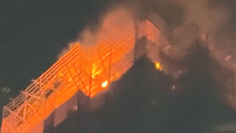 高雄建築工地26樓起火 消防員負重35公斤爬樓滅火