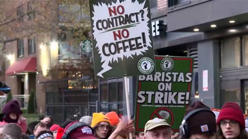 |全球超過1000名星巴克的工會員工13日在全美約65家門市發動無限期的罷工,由於這天是1年當中最忙碌的「紅杯日」,希望凸顯資方長期拒絕在薪資、工時與人力配置等議題上與工會協商。罷工擴及紐約、西雅圖等45個城市,部分門市被迫關閉。儘管加入工會的門市不到4%,這次罷工仍被視為星巴克勞方歷來規模最大的抗爭。
