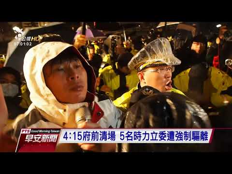 |兩岸總統府前的最新畫面,時代力量5位立委,因為抗議勞基法修法,從上週五晚間開始在總統府前禁食抗議;警方在今天凌晨4點15分左右,執行強制驅離,立委徐永明被載上救護車送醫檢查,這場將近60小時的抗議行動,暫時告一段落。 今天凌晨,台北持續下著雨,時代力量立委徐永明,被警方包圍,帶離總統府前、凱道的抗議現場。警方大約4點15分展開清場。五位時代力量立委和現場的十幾人,陸續被強制驅離。過程中一