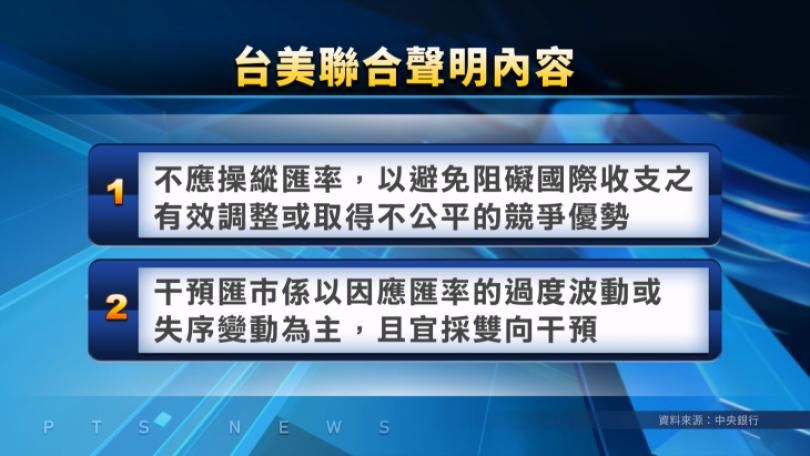 央行與美財政部發聯合聲明 重申不應操縱匯率