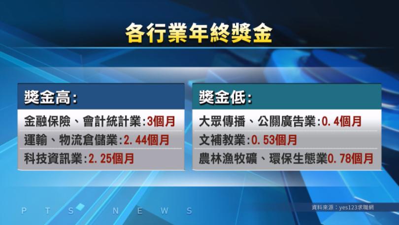 |產經2025年即將進入尾聲,根據求職網調查,今(2025)年年終獎發放最大方的行業是金融保險、會計統計業,平均有3個月,其次是運輸和物流倉儲業,也有2.44個月。不過像是大眾傳播、公關廣告業,今年年終獎金可能只有0.4個月。還有因為今年房市買氣冷淡,像是房仲業的年終也可能縮水。