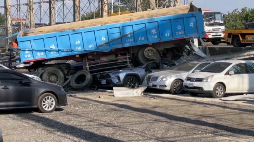 國2甲圳頭交流道車禍 砂石車衝進停車場多車受損