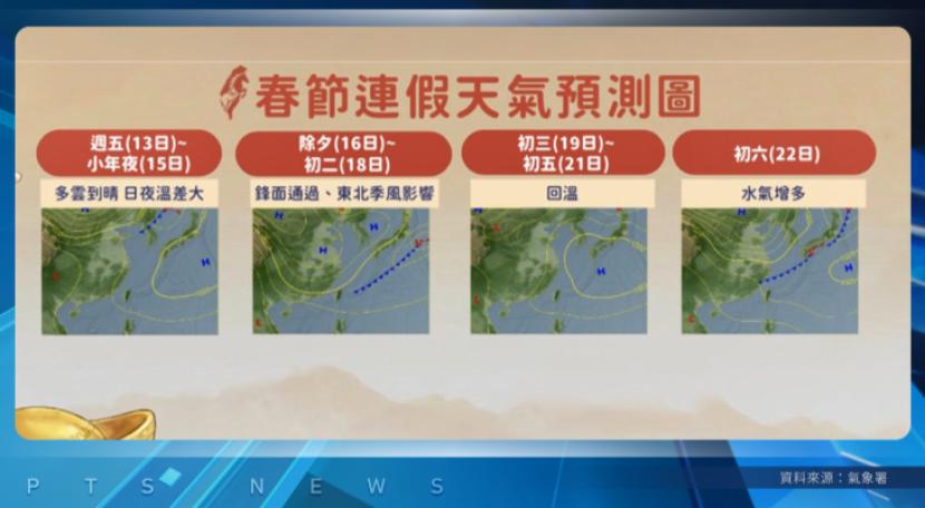 春節天氣"頭尾溫暖.中間澹冷" 北.東部變化大