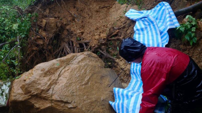 基隆土石滑落砸民宅屋頂 屋主連夜搬離