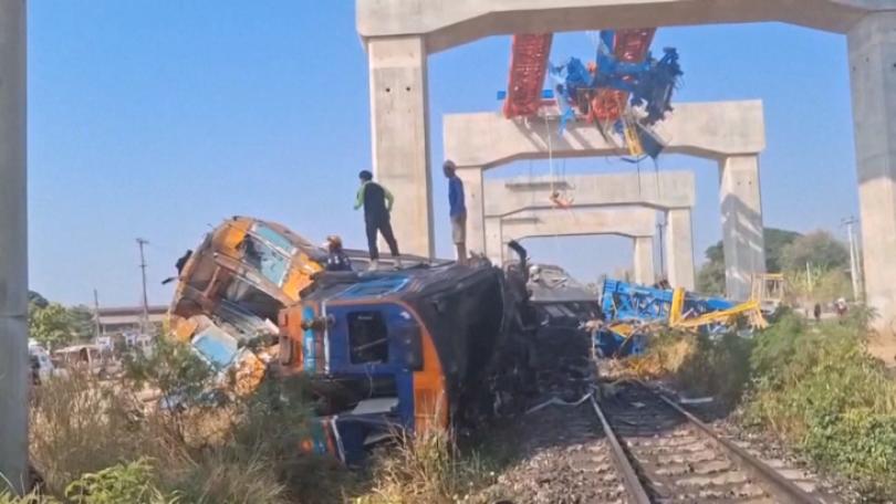 泰鐵路工程起重機砸中行駛列車 致脫軌起火已22死79傷