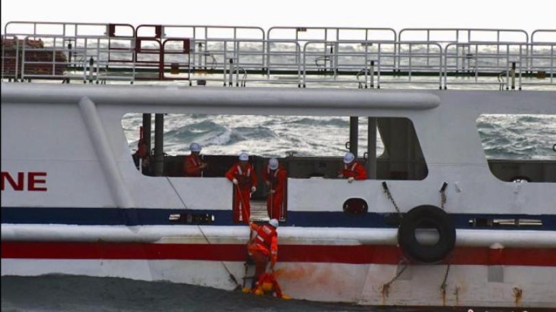 |台語新聞中國官方媒體公開相片,講in出動3隻公務船,頭1改佇澎湖西南爿,台灣灘uann海域,舉行搜救演練。佇臺灣海峽中部海域執法。咱國海巡署回應,有全程掌握批評中國,這舉動本質就是對臺灣的騷擾。(新聞標題、導言為台語文)
