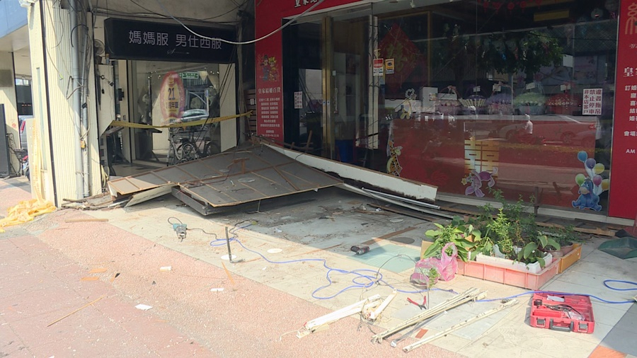 |A ceiling outside a store in Kaohsiung suddenly collapsed and six scooters parking at the arcade were hit by falling debris. The Kaohsiung City Building Administration Office is now figuring out who