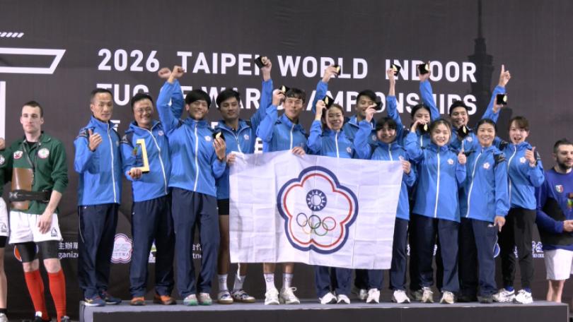 |文教科技2026世界室內拔河錦標賽,今(15)日進入最後一天賽事,各界關注的女子540公斤級賽事,我代表隊勢如破竹,順利拿下金牌;男子640公斤級賽事同樣拿下金牌,展現台灣拔河的強大實力,獲得滿堂彩。