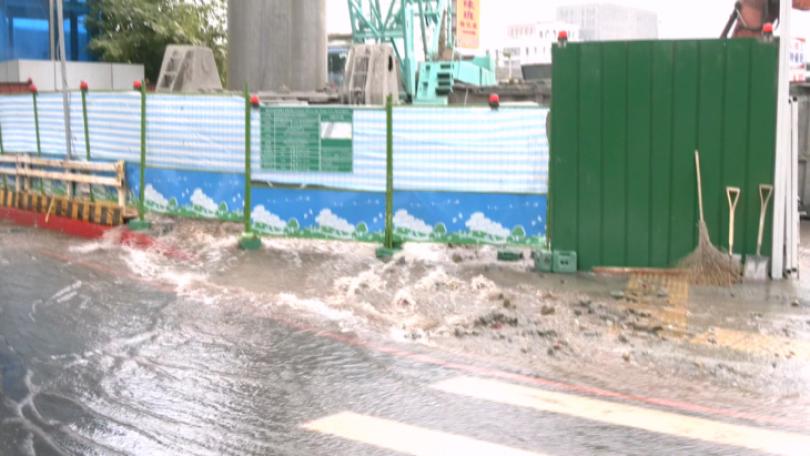 |地方新北新莊的新北大道五工路口,今(8)日出現路面大量積水的情況,原來是新北市養工處進行跨新北大道人行天橋工程不慎弄破水管,自來水外洩導致交通大亂,自來水公司則緊急關閉水源。市長侯友宜表示,希望相關單位加緊搶修,明(9)日早上班前能完成修復。